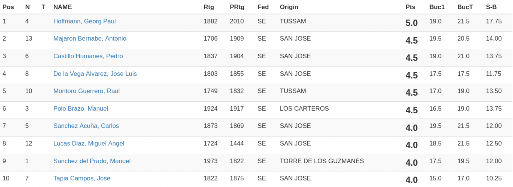 Georg Hoffman, fuerte jugador de Tussam y ya habitual en nuestro Circuito de Bares desde el año pasado, ha sido el campeón indiscutible en este torneo. Georg parece tener buenas vibraciones con este bar, pues fue subcampeón en la primera edición y ahora campeón en la segunda con 5 puntos, sin perder ninguna partida, sólo cediendo dos tablas ante Rafa Campos y Raúl Montoro.
