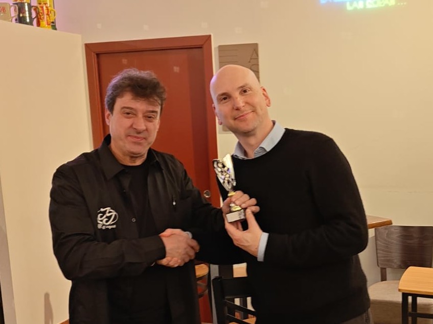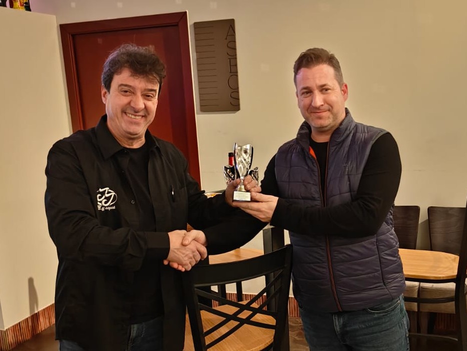 El fuerte jugador chileno Ladislao Rakos, que se encuentra temporalmente trabajando en España, se estrenó en el Circuito de Bares como subcampeón del torneo con 5 puntos. No perdió ninguna partida, cediendo sólo tablas ante la campeona Mari Carmen y José Luis de La Vega.